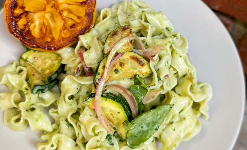 Embrace summer with every refreshing bite of this Lemon Pesto Greek Yogurt Noodle Salad. Summer seasonal vegetables are in and they are the best additions to this noodle salad!